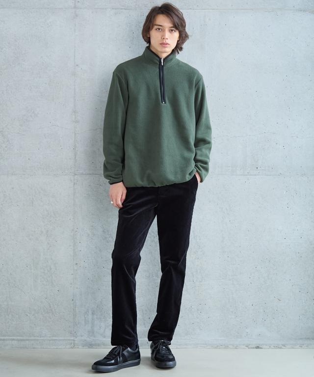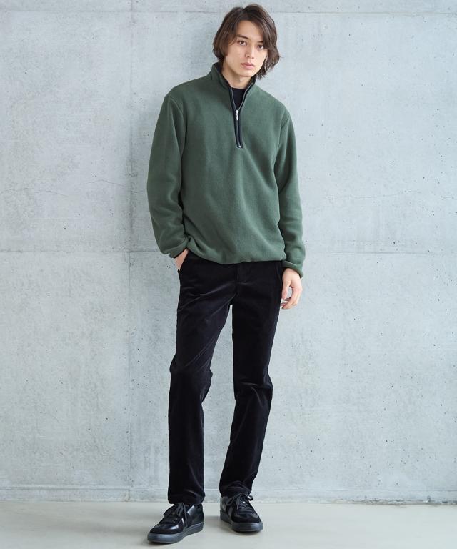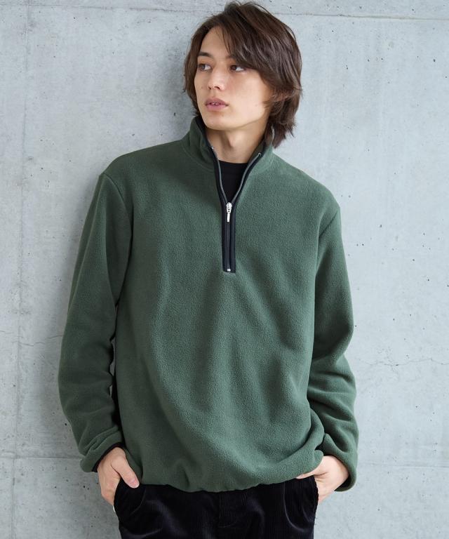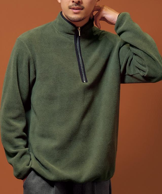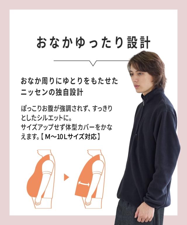 トレーナー メンズ お腹ゆったりフリース ハーフ ジップ ダークグリーン/黒 M/L/LL ニッセン nissen