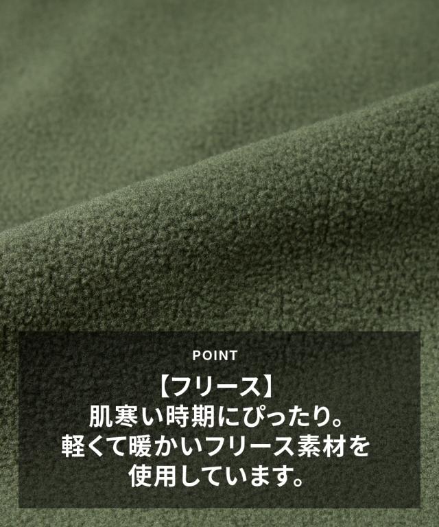 品質=ポリエステル100%(カットソー フリース) 透け感:なし 伸縮性:ややあり 生地の厚み:普通 光沢感:なし ポケット:なし 季節:冬向き シルエット:普通 原産国:中国製 洗濯表示:洗濯機OK