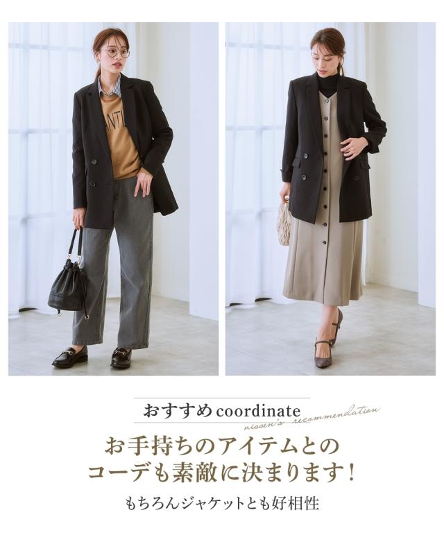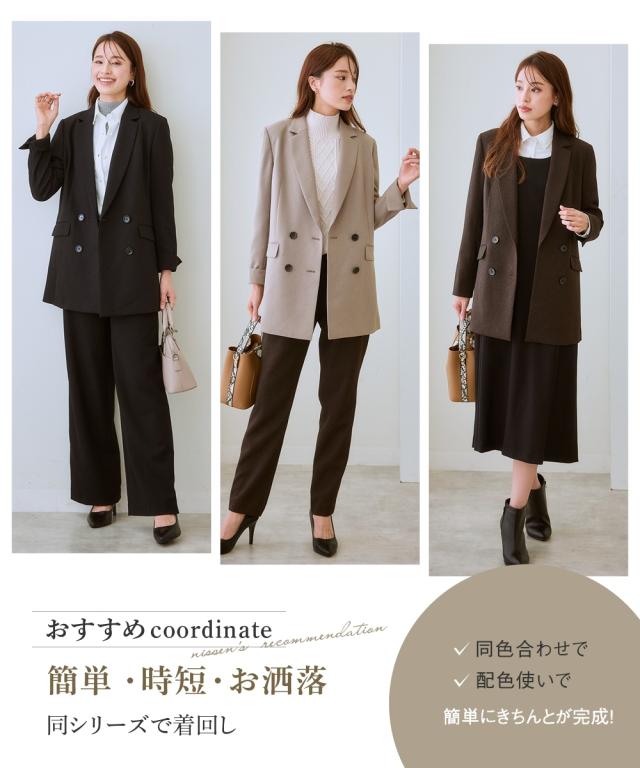 ジャケット レディース 洗えるウール調 ストレッチ ダブルブレスト スーツ セットアップ対応 上下別売 冬 S/M/L ニッセン nissen