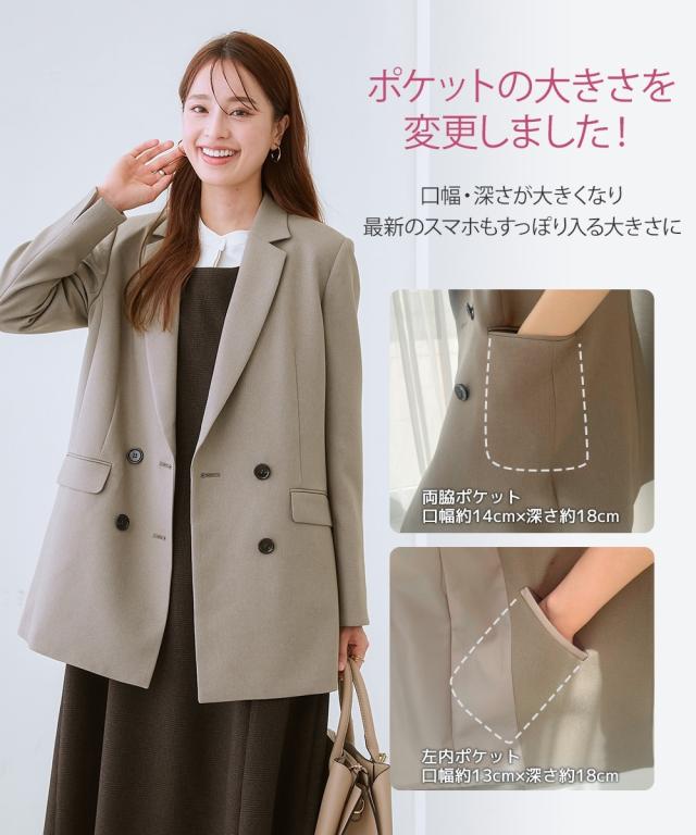 ジャケット レディース 洗えるウール調 ストレッチ ダブルブレスト スーツ セットアップ対応 上下別売 冬 LL/3L ニッセン nissen