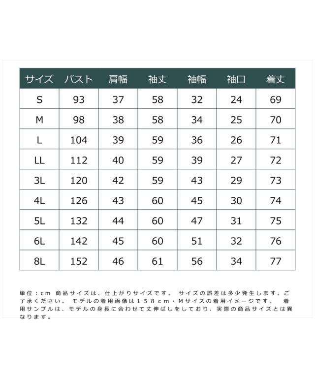 品質=[表地]ポリエステル100%(織物 ストレッチ綾織) [裏地]有(総裏) 肩パッド有(取外し不可) 前ボタン開 ポケット前2・左内 袖口スリット 後ベンツ ※LLサイズから五面体仕様です。 ※柄の出方が異なる場合があります。 原産国:中国製 備考:洗濯機OK ネット使用 ※単位:cm※商品サイズは、仕上がりサイズです。※サイズの誤差は多少発生します。ご了承ください。※モデルの着用画像は158cm・Mサイズの着用イメージです。 着用サンプルは、モデルの身長に合わせて丈伸ばしをしており、実際の商品サイズとは異なります。