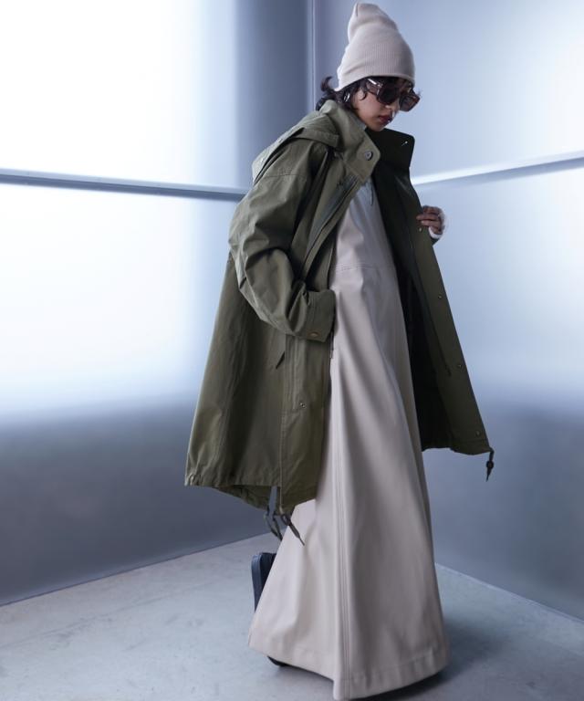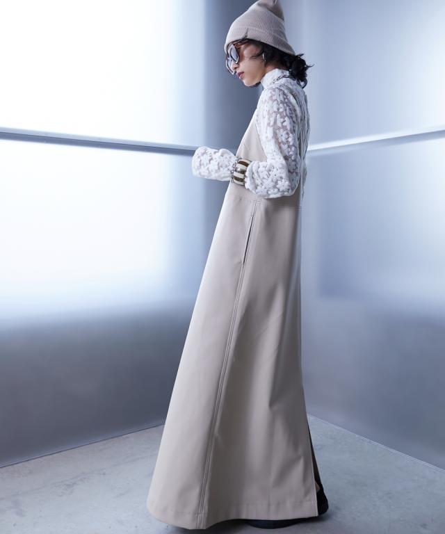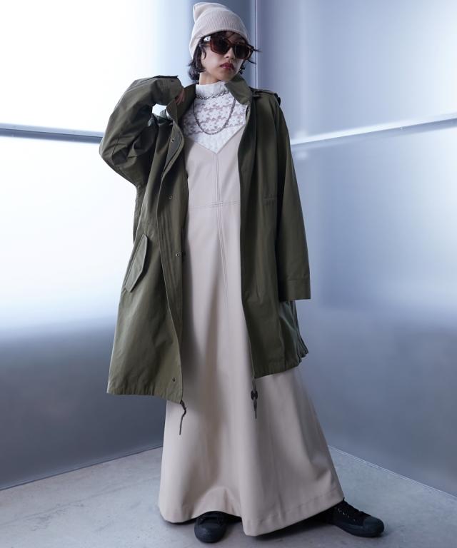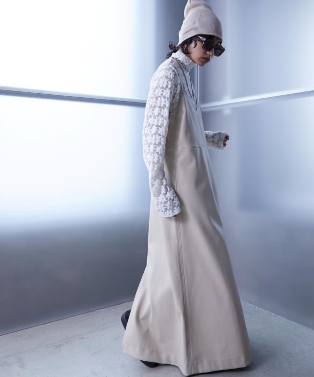 今季注目のフェイクレザーを使用したキャミソールワンピース。 マキシ丈で縦長効果が期待できる1枚 ■デザイン トレンドのフェイクレザー素材のキャミソールワンピース。 すっきりと見えるカッティングにこだわりました。 ■素材 肉厚のフェイクレザー素材を使用 ■おすすめのスタイリング ハイネックレースやタートルニットを合わせたスタイリングがおすすめ。
