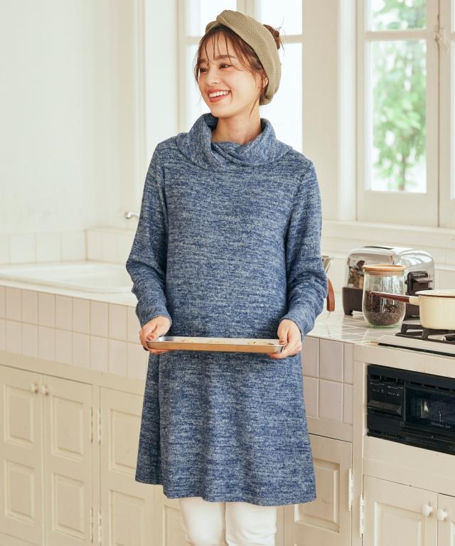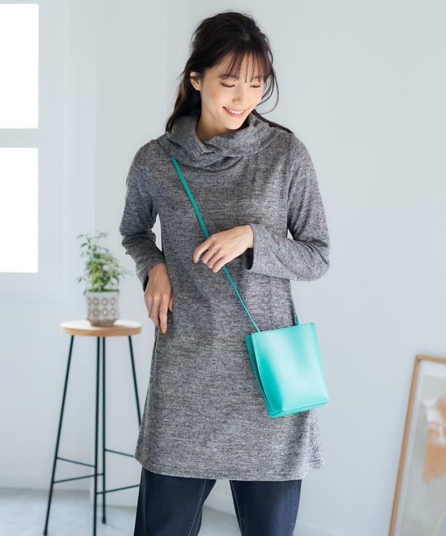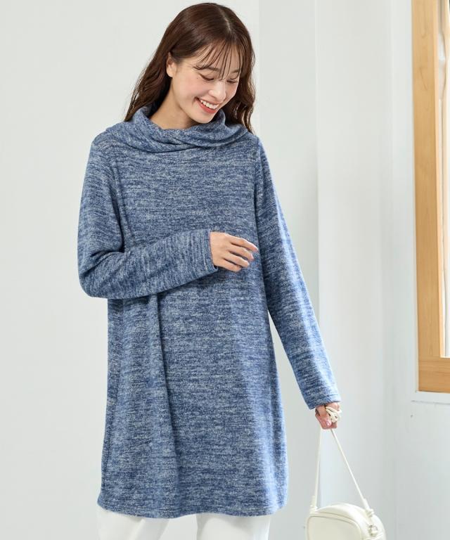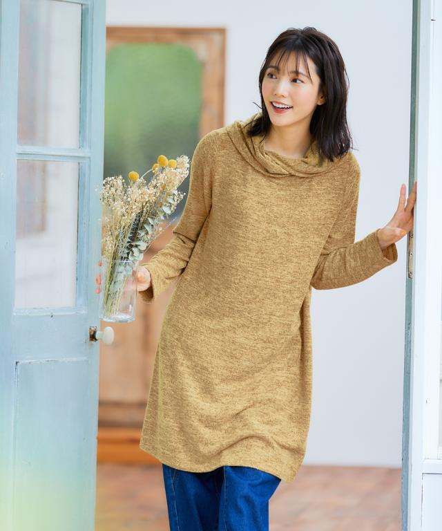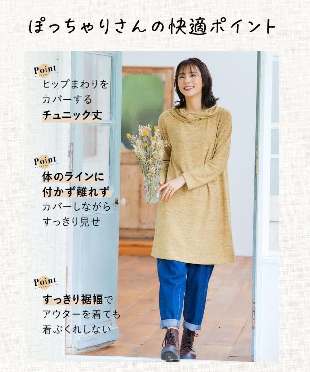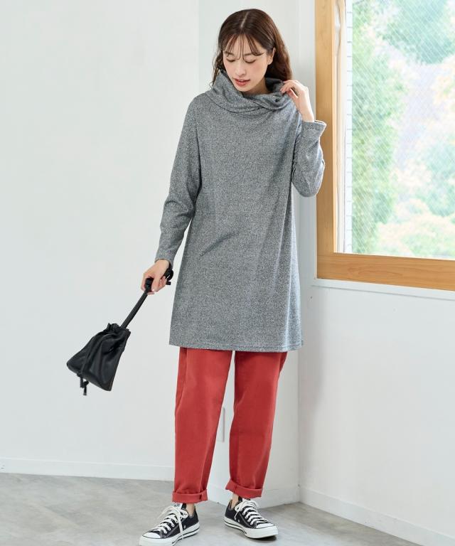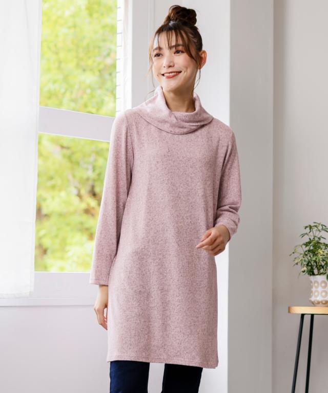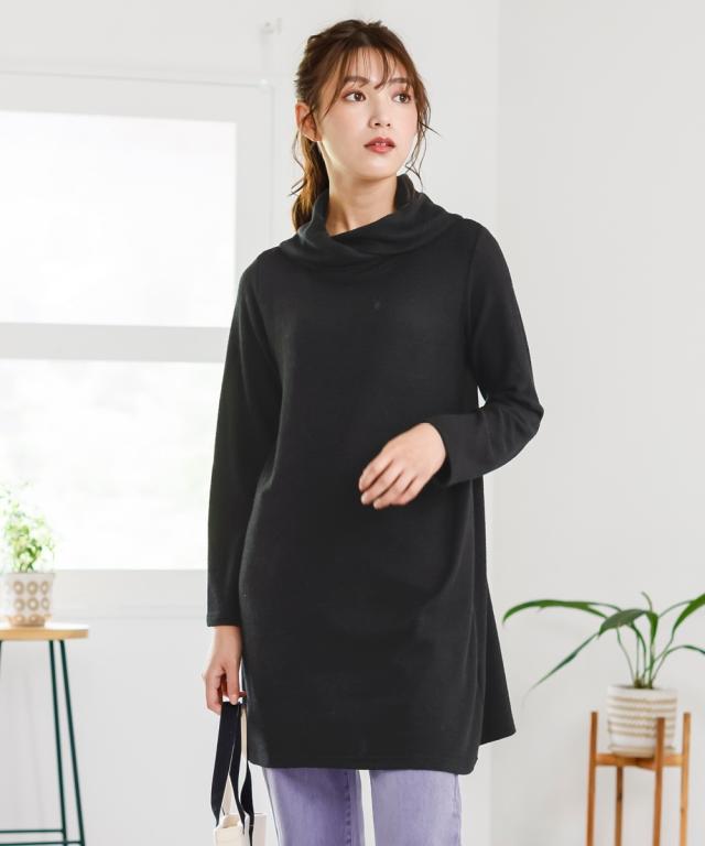 大きいサイズ 首暖かスタンドネック起毛カットソーチュニック