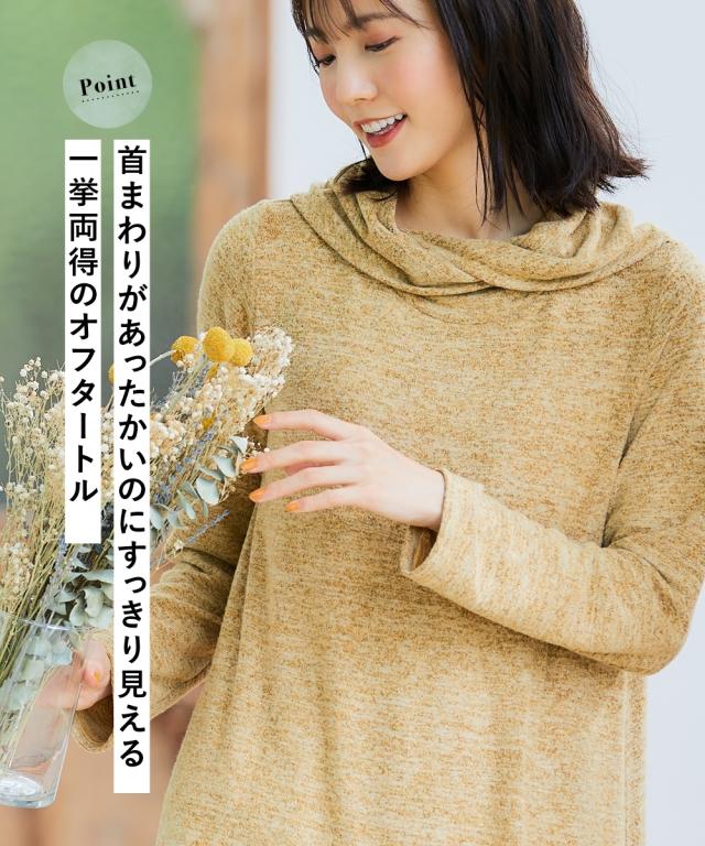 チュニック 大きいサイズ レディース 首暖かスタンドネック起毛 カットソー L/LL/3L/4L/5L ニッセン nissen