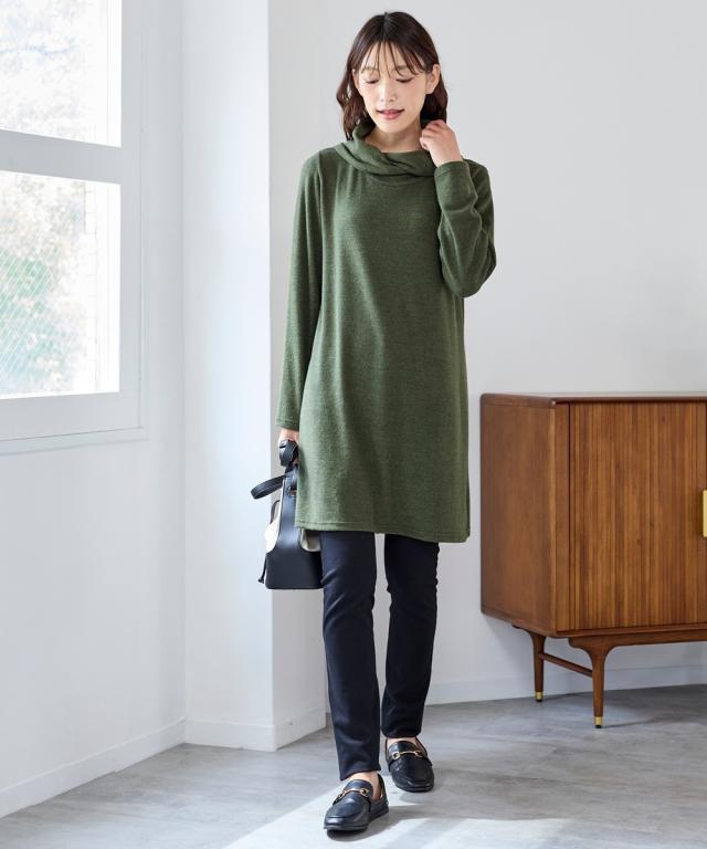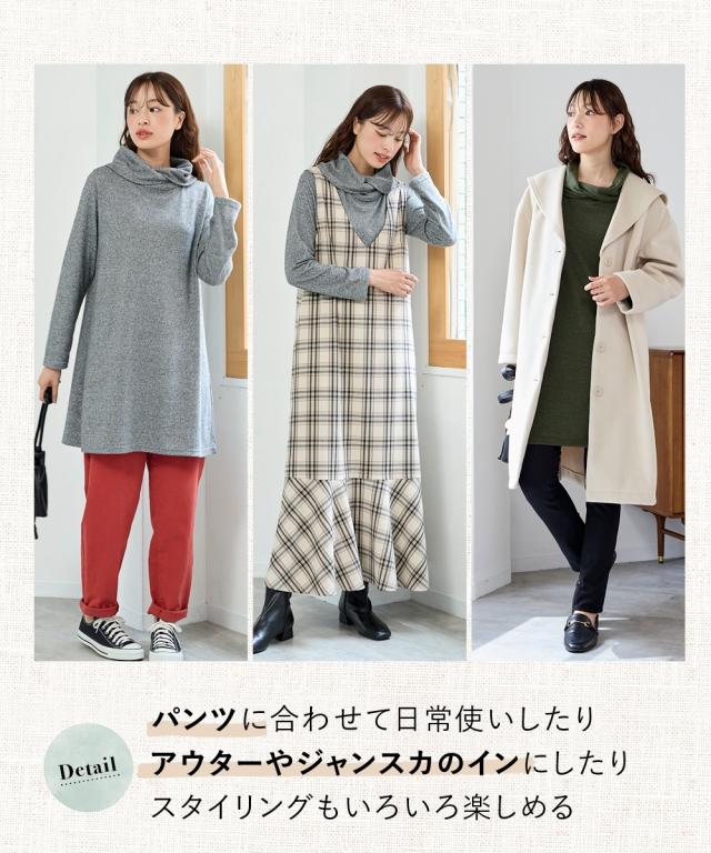 [keyword] 大きいサイズ レディース ゆったりサイズ プラスサイズ ロング丈 おしゃれ 長い 長袖 Vネック タートルネック 洗濯機洗いOK 洗濯 あったか 冬 防寒 カットソー 無地 無地調 柄 かわいい ベーシック シンプル 定番 着回し カジュアル [comment] まるでニットのような着心地!洗濯機で洗えて便利。暖かチュニック! ■デザイン 気になる首回りをカバーしてくれて暖かいスタンドネックトップスです。気になる腰回りをしっかりカバーしてくれます。 ■素材 肌触り柔らかく、暖か、まるでニットのような肌触りです。洗濯機で洗えるのでお手入れ簡単です。 ■おすすめのスタイリング シンプルに1枚でパンツと合わせるだけでコーディネートがきまります。寒い日は中にシャツやハイネックを合わせてもかわいいので長く使っていただけます
