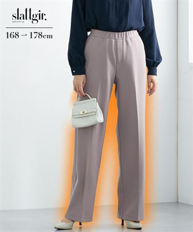 【高身長な方向け】カットソーだけどキチンと感のあるきれいめワイドパンツ。 ■デザイン ・センタープレスの縦ラインでキレイ見え・ウエスト総ゴムで履き心地らくちん・ダボつかないすっきりとしたワイドシルエット ■素材 ・布帛見えするカットソー素材を使用・2枚重ねの生地で程よくハリ感をプラス・寒い季節に嬉しい裏起毛素材→裏起毛ですが、ごわつかないのがポイントです!・伸縮性あるカットソーで履き心地も楽々です。 ■おすすめのスタイリング キチンと綺麗見えするパンツですので、オフィススタイルなどONスタイルにもご着用いただけます。ベーシックな黒は勿論ながら、冬のホワイトパンツコーディネートはより華やに見えるのでおすすめです モノトーンスタイルをはじめ、トップスに鮮やかなカラーを合わせたスタイリングを是非お楽しみください。