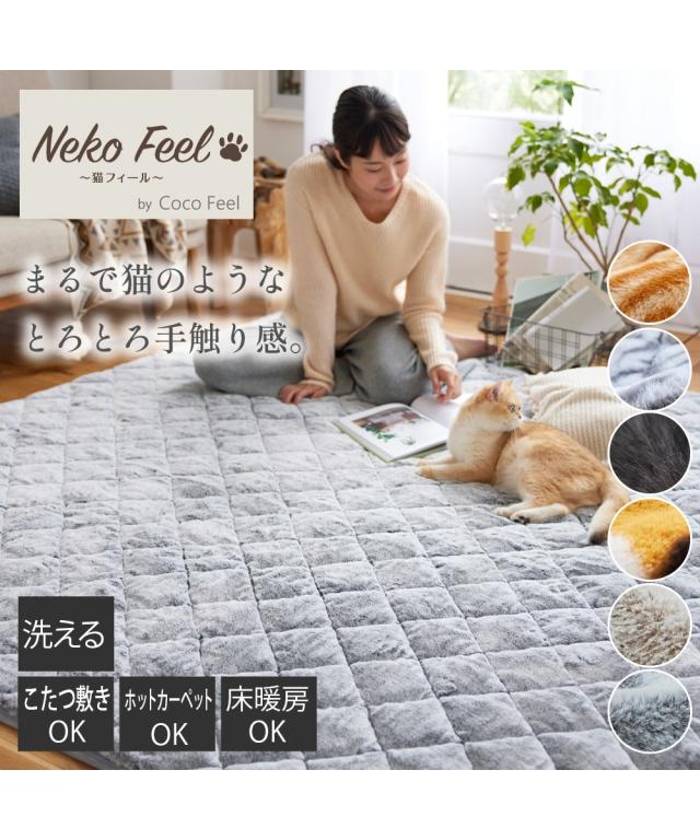 ラグ 猫Feel 猫フィール まるで猫!のような 洗える モフモフ キルト 約90×130cm