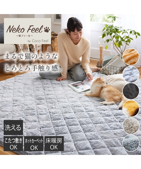 ラグ 猫Feel 猫フィール まるで猫!のような 洗える モフモフ キルト 約185×185cm
