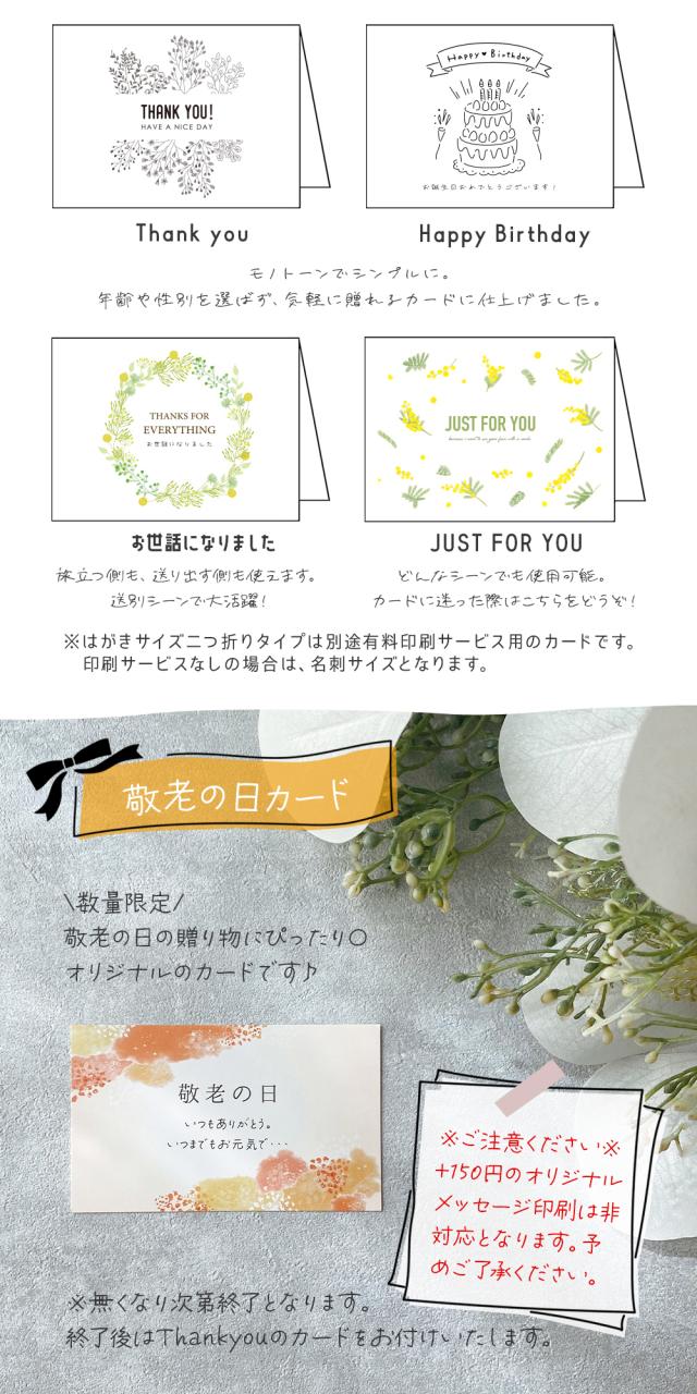 今ならギフトラッピングキットが無料! 選べるメッセージカード付きなので、届いてそのまま贈れます!選べるカードとお渡し袋も付けられて、届いてそのまま渡せます!