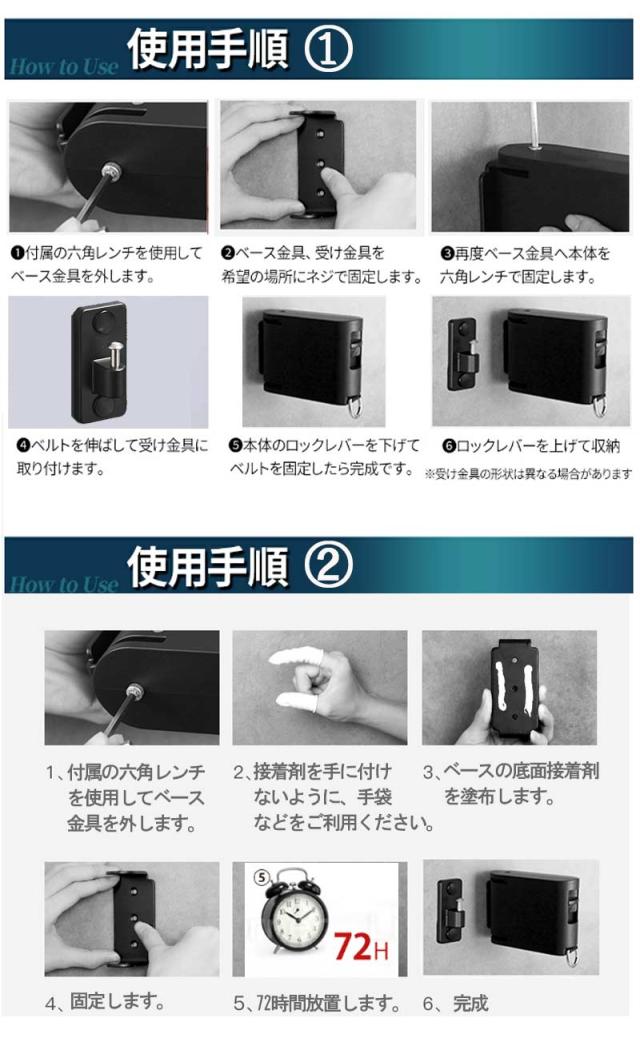 商品仕様:セット内容:本体*1、専用フック*2、六角レンチ*1、接着剤*1、取付用ネジ*7、ボードアンカー*7、ネジキャップ*4