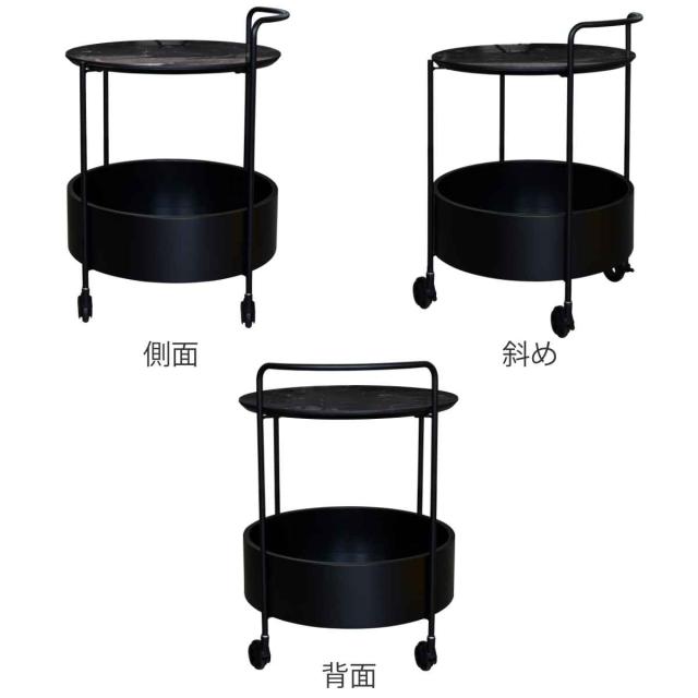 サイドテーブル キャスター 丸 収納 大理石柄 取っ手 ストッパー付き 高さ63cm ( ナイトテーブル ミニテーブル ソファ ベッド 横 ワゴン スタイリッシュ モダン 高級感 完成品 )