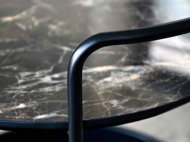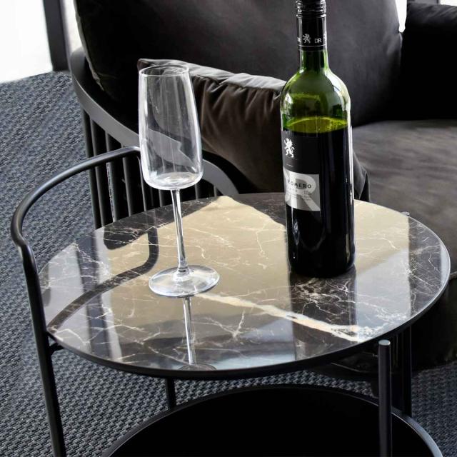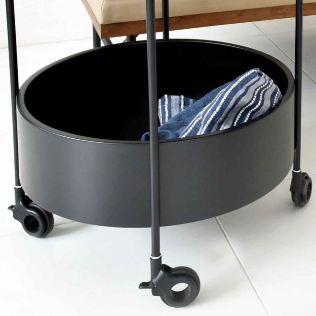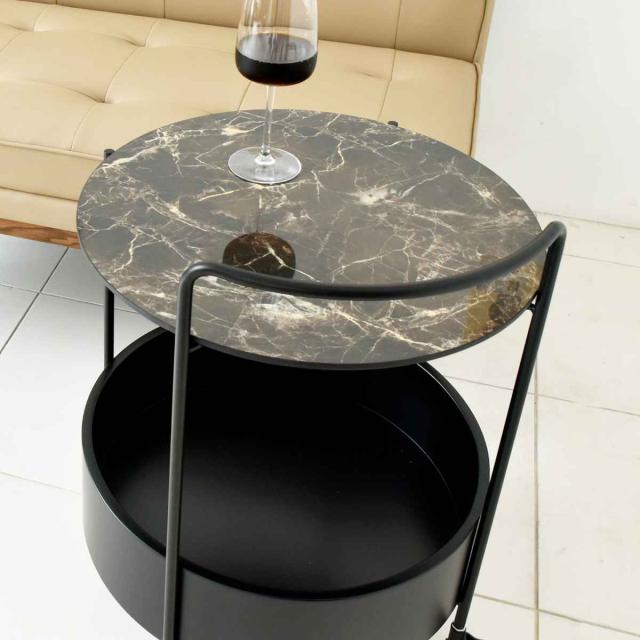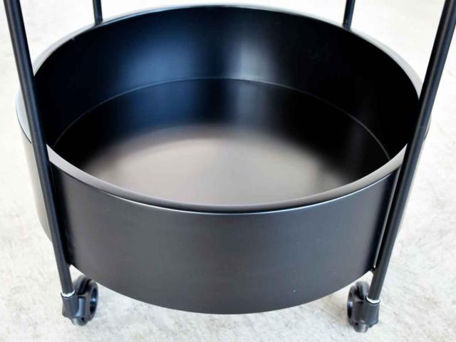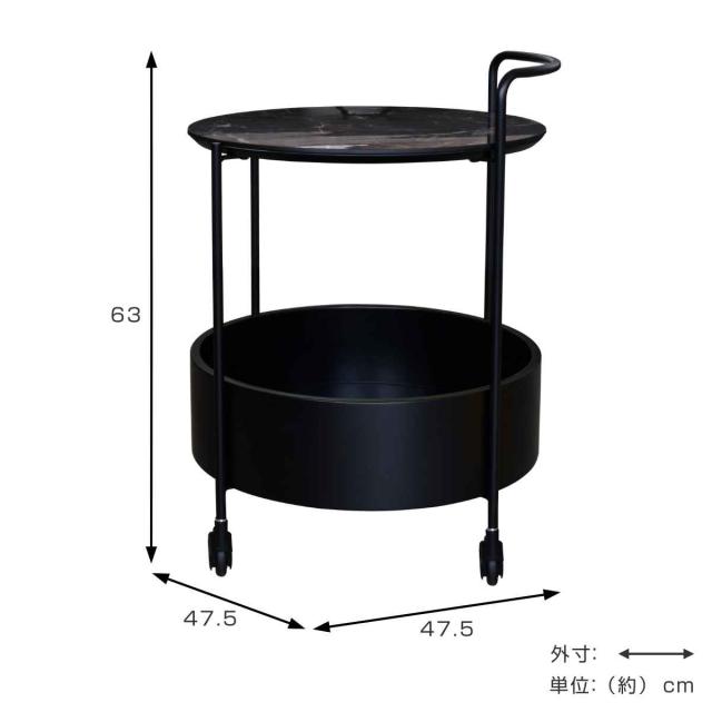 大理石柄の天板と移動に便利なキャスターが付いたサイドテーブルです。黒で統一されたモダンなデザインです。天板は直径約47.5cmと少し大きめなので、リビングや寝室で使いやすいサイズ感です。