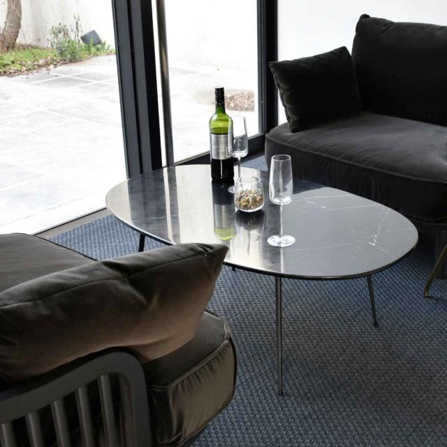 黒大理石の天板×繊細なスチール脚が美しいリビングテーブル
