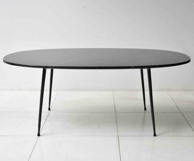 高級感漂う黒大理石の天板と繊細なスチール脚が美しい