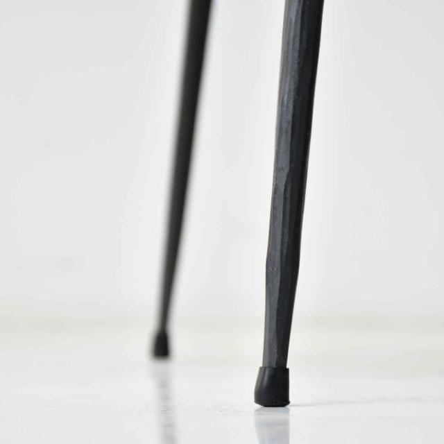 スチール製の脚部は、独特の削り跡を残す日本の伝統技術「なぐり加工」が施されております。細身なので圧迫感を感じさせにくく、空間に馴染みやすいです。