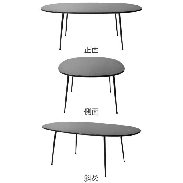 ローテーブル おしゃれ 小さめ 丸 天然大理石 スタイリッシュ 幅100cm ( 奥行60cm リビングテーブル センターテーブル ロー テーブル 楕円 オーバル 黒 ブラック スチール モダン 高級感 完成品 )