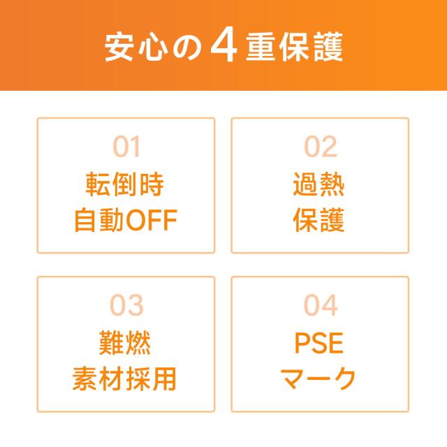 安全装置:転倒OFFスイッチ、過熱保護機能