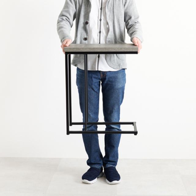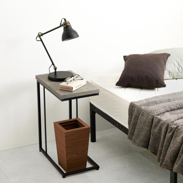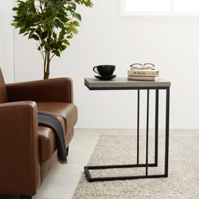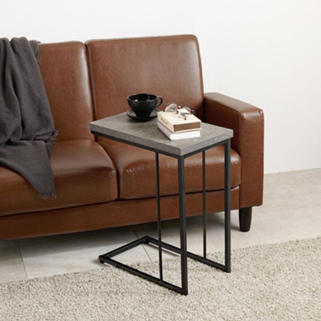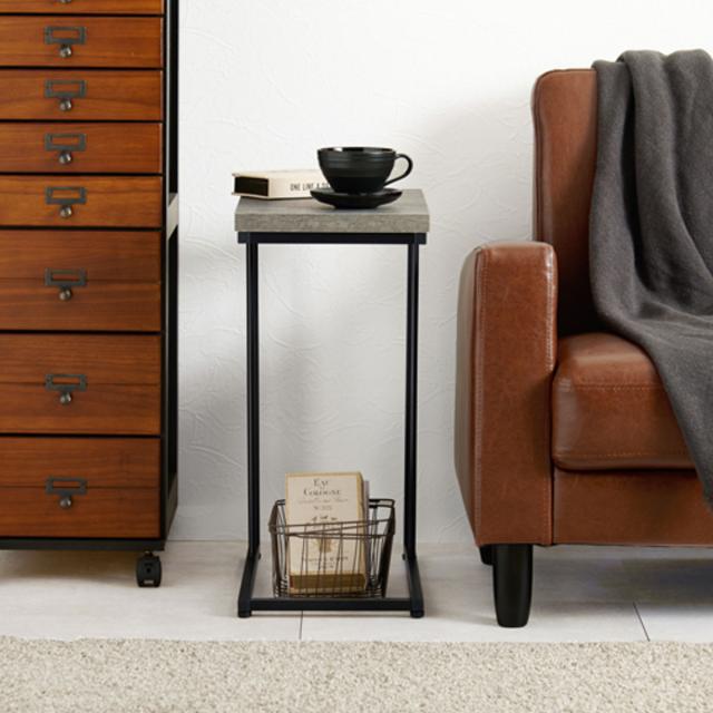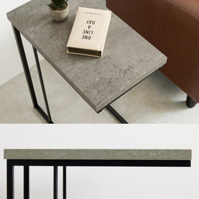 本や小物、飲み物などちょっとしたものを置くのに便利なサイドテーブルです。スリム設計で置きやすく、コの字型の脚なのでソファサイドやベッド横で使いやすい仕様です。コンクリート柄とスチールフレームを組み合わせた無駄のないシンプルなデザインでお部屋に溶け込みます。