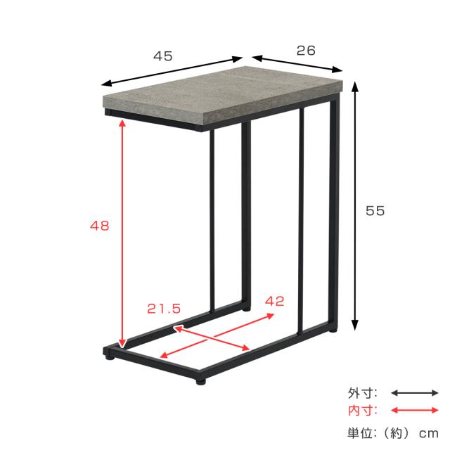 サイドテーブル スリム 軽量 お手入れ簡単 コの字型 コンクリート調 高さ55cm ( ナイトテーブル ミニテーブル ソファ ベッド 横 シンプル モダン スタイリッシュ )