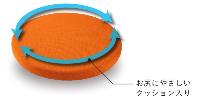 お尻と床の摩擦をなくし、回転によって上半身へのゆれを増幅させます。