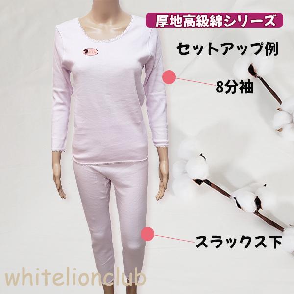 あったか インナー 5分丈ボトム ひざ上丈 レディース 綿 エイトロック編み 厚地 秋冬 アンダーボトム 日本製 M/L/LL おためし