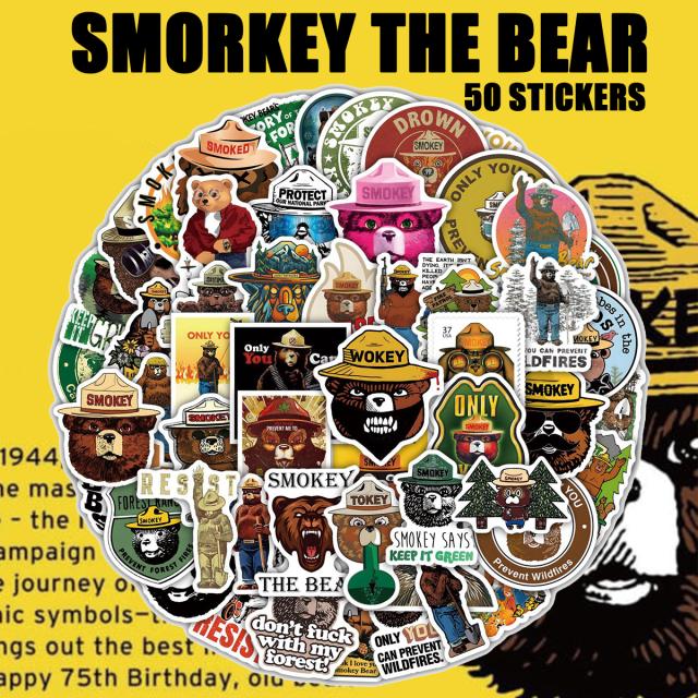 スモーキーベア ステッカー 50枚セット PVC 防水 シール アメリカ クマ 熊 マスコット キャラクター スーツケース MacBook