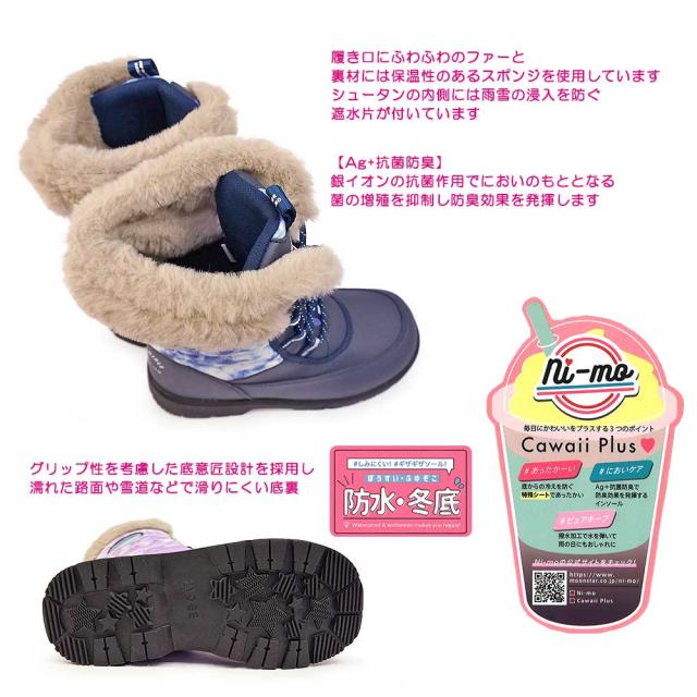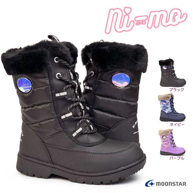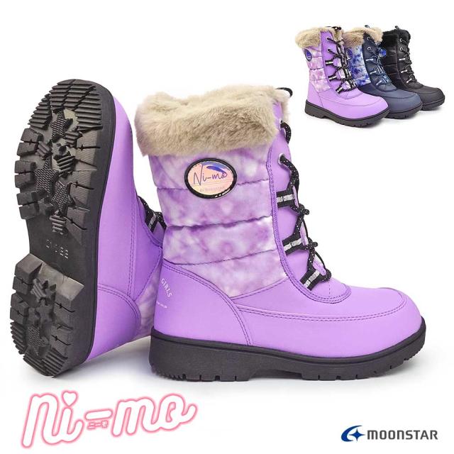 ムーンスター ニーモ 防水ブーツ NM WPJ019 ファー レースアップ キッズ ガールズ ショート 防寒 防滑 雨雪 雪道 MoonStar ni-mo