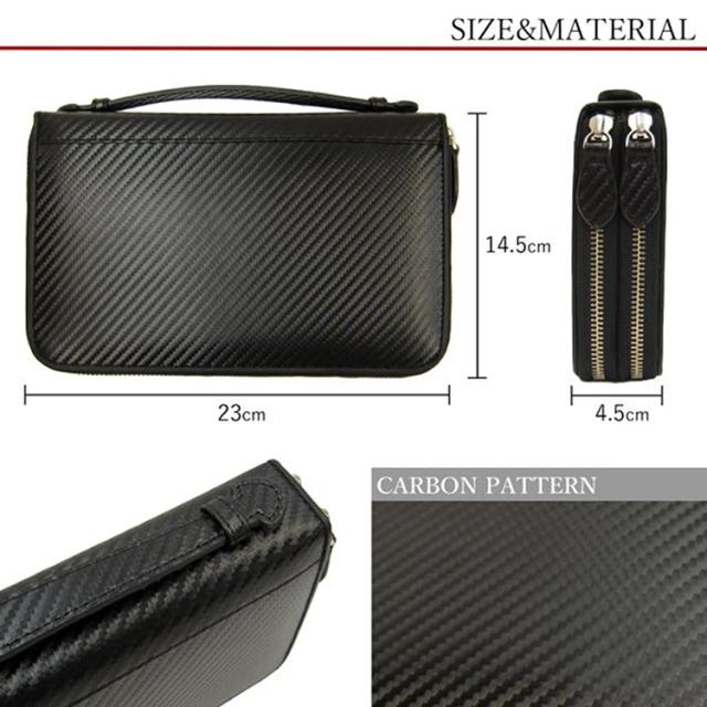 セカンドバッグ メンズ 財布機能付 牛革 カーボンレザー ダブルファスナー Wファスナー バッグ 財布 MT-34 ブラック 大容量 パスポート 通帳 カード入れ 男性