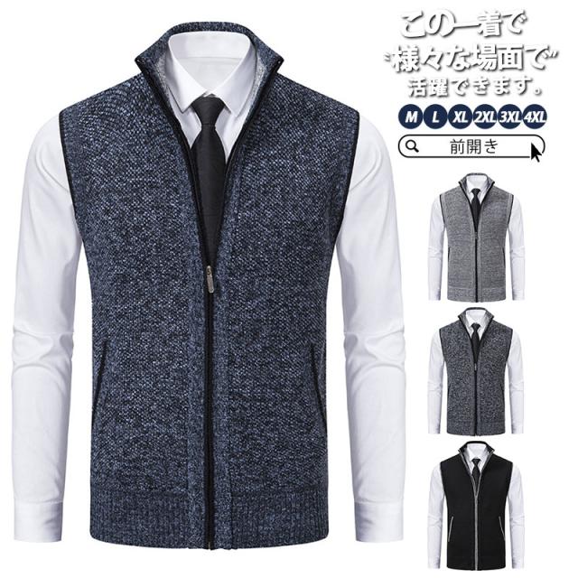 【水曜日まで!10%クーポン配布中】 ニットベスト メンズ 秋 冬 春 夏 前開き セーター チョッキ ゴルフウェア ゴルフベスト カジュアル ジレ シンプル 重ね着