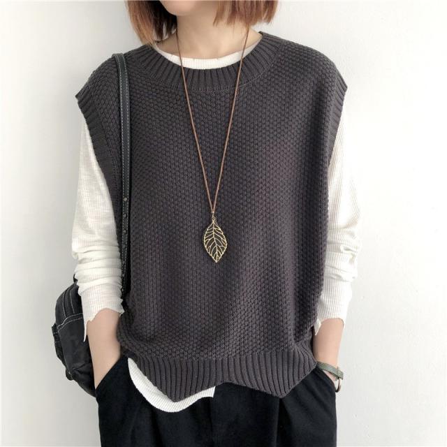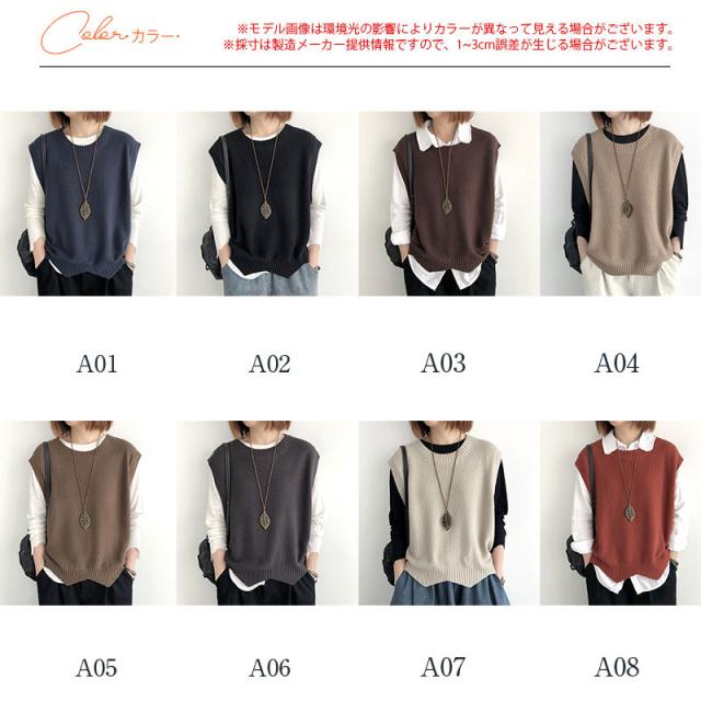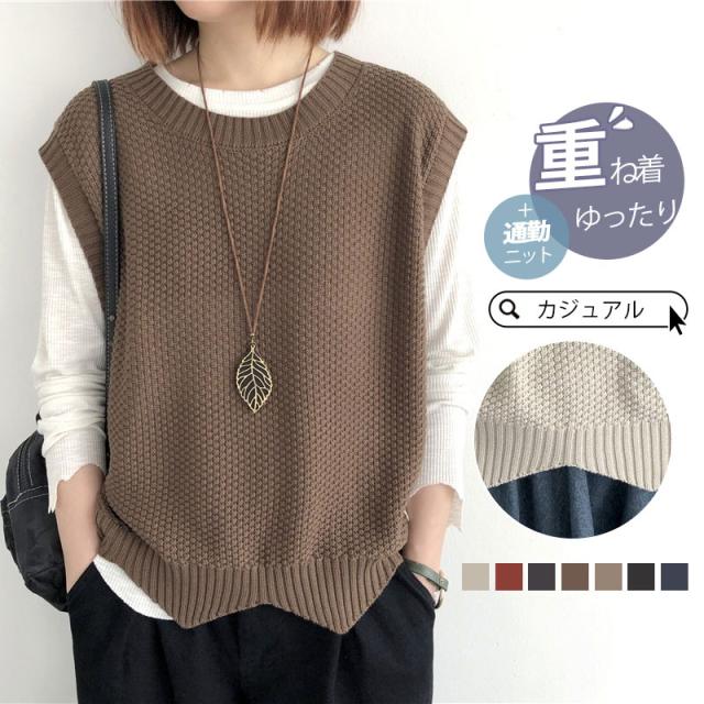 【水曜日まで!10%クーポン配布中】 ニットベスト レディース チョッキ トップス 秋 冬 春 ノースリーブ レイヤード 重ね着 ゆったり プルオーバー ベスト ジレー