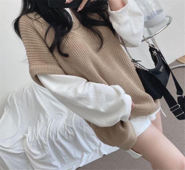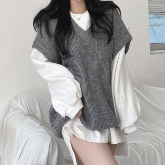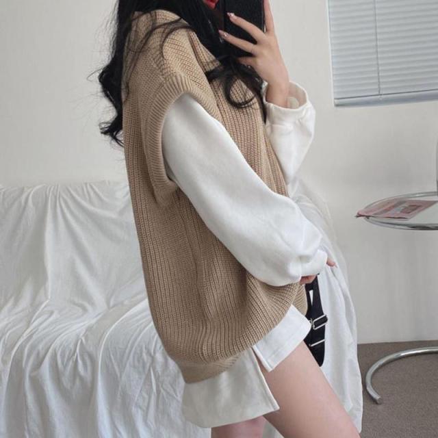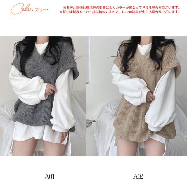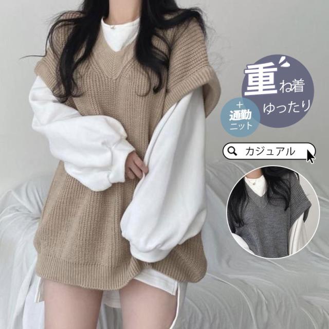 【水曜日まで!10%クーポン配布中】 ニットベスト レディース チョッキ トップス 秋 冬 春 ノースリーブ レイヤード 重ね着 ゆったり プルオーバー ベスト ジレー