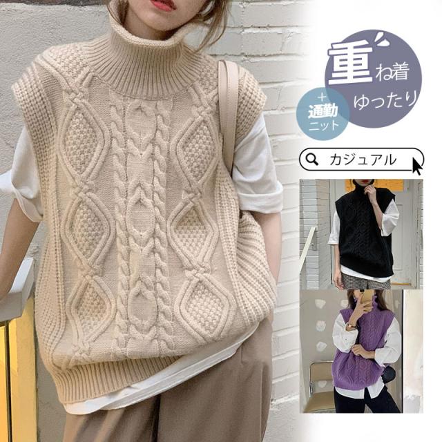 【水曜日まで!10%クーポン配布中】 ニットベスト レディース チョッキ トップス 秋 冬 春 ノースリーブ レイヤード 重ね着 ゆったり プルオーバー ベスト ジレー