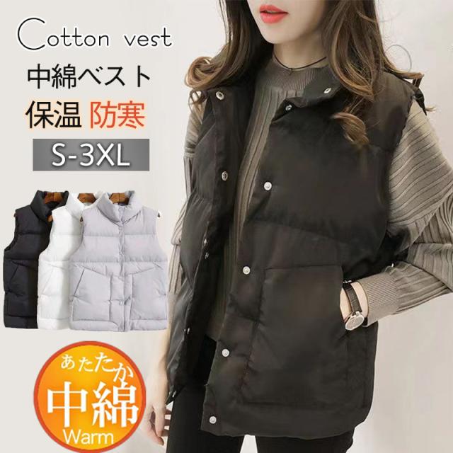 半額セール 中綿ベスト ダウンベスト レディース ベスト ショート丈 トップス 無地 ゆったり シンプル きれいめ カジュアル ア