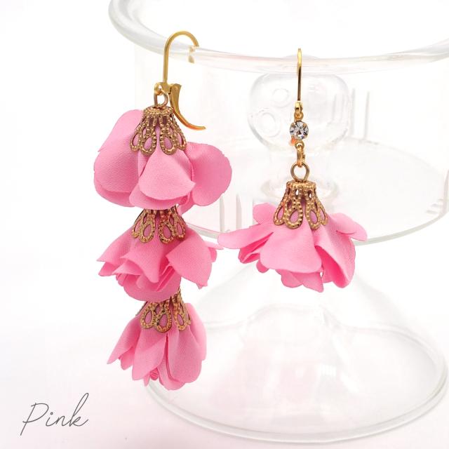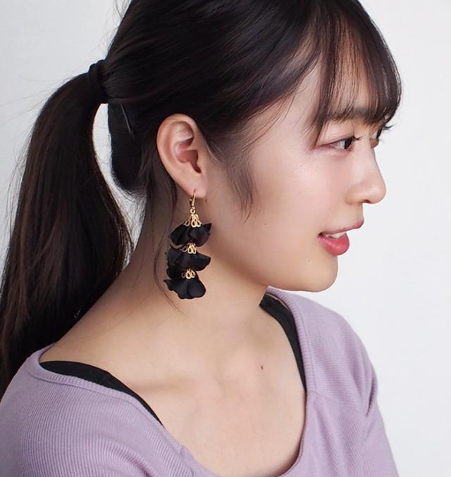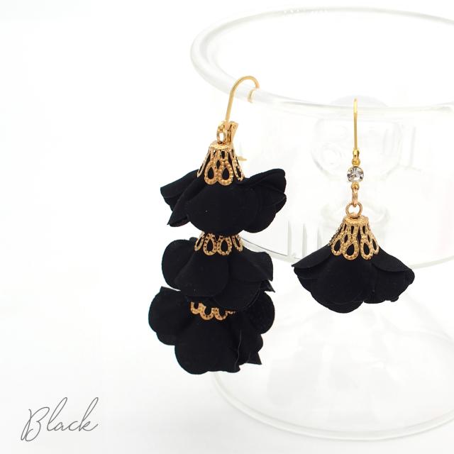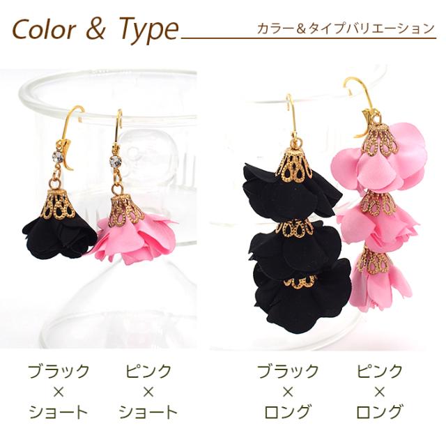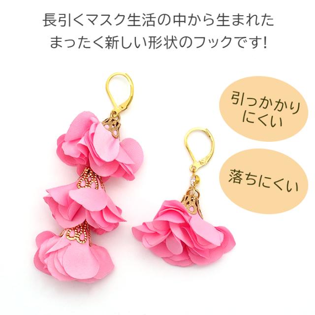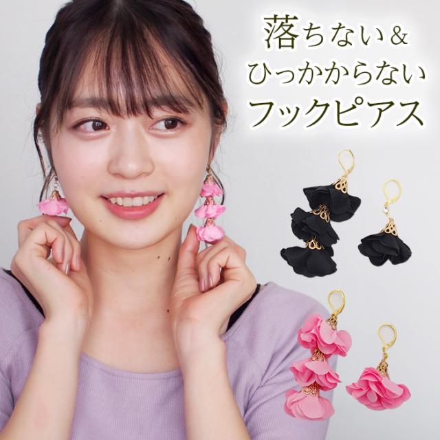 ピアス 金属アレルギー サージカルステンレス フック 落ちない 引っかからない 外れにくい フック 花びら フラワー タッセル 揺れる 上品 かわいい 大ぶり アシンメトリー ハロウィン コスプレ クリスマス パーティー
