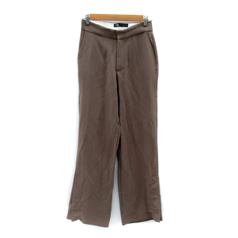 【中古】ザラ ZARA フレアパンツ ロング丈 無地 スリット XS 茶 ブラウン /SY25 レディース