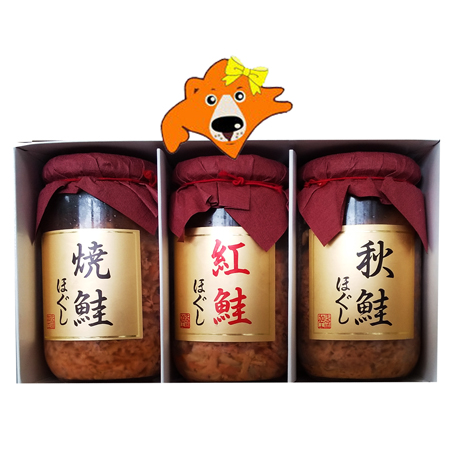 鮭フレーク 送料無料 鮭 フレーク ほぐし身 焼鮭ほぐし 紅鮭ほぐし 焼鮭ほぐし 瓶詰めギフト 簡易包装 3種セット 化粧箱入り シャケフレーク 水産加工品
