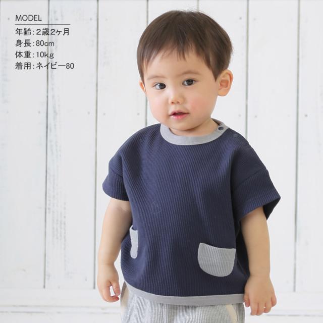 半袖 tシャツ 子ども 通販 Tシャツ ワッフル 生地 男の子 キッズ 子供服 子ども服 ボーイズ バイカラー おしゃれ かわいい ポケット 男児 ニューベーシック Aenak 225003 ベビー服 トップス キッズファッション ベビーファッション