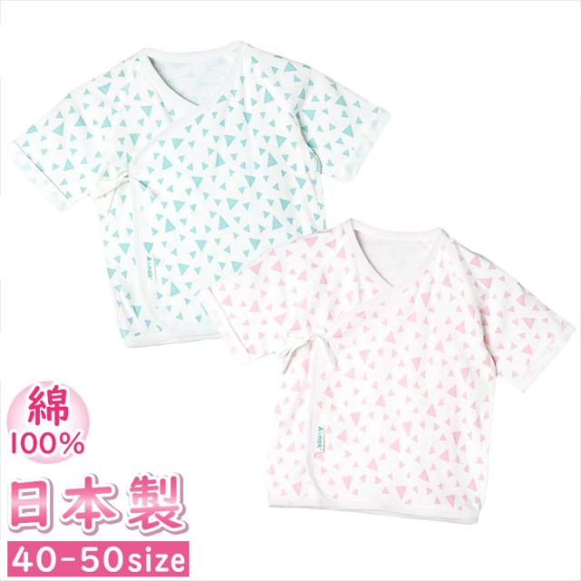新生児 肌着 日本製 短肌着 通販 ベビー肌着 ベビー 服 赤ちゃん 女の子 男の子 低体重出生児 幾何柄 幾何学柄 綿100% 40cm 40センチ やわらかい フライス素材 可愛い おしゃれ