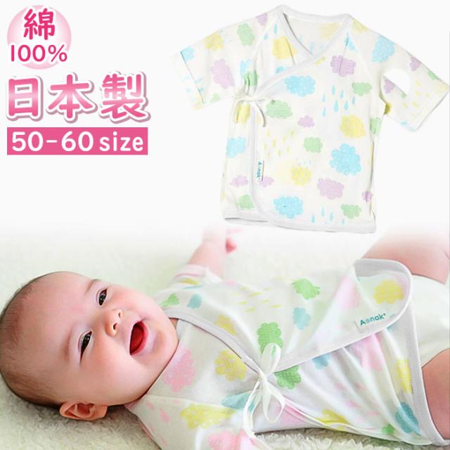 新生児 肌着 日本製 短肌着 通販 ベビー肌着 ベビー 服 赤ちゃん 女の子 男の子 50cm 50センチ 綿100% 雲柄 雲 くも やわらかい 柔らかい フライス素材 可愛い おしゃれ かわいい