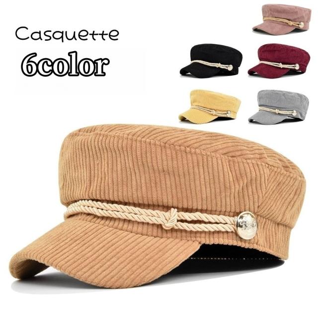 コーデュロイ生地でかわいいデザインのレディース用キャスケット帽です。