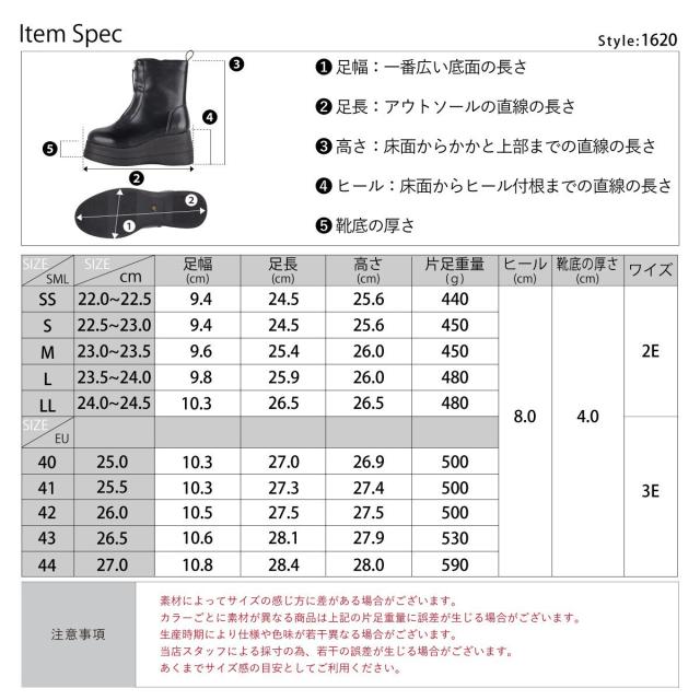 「UNISEX」22.5〜27.0cm★厚底センタージップショートブーツ★1620