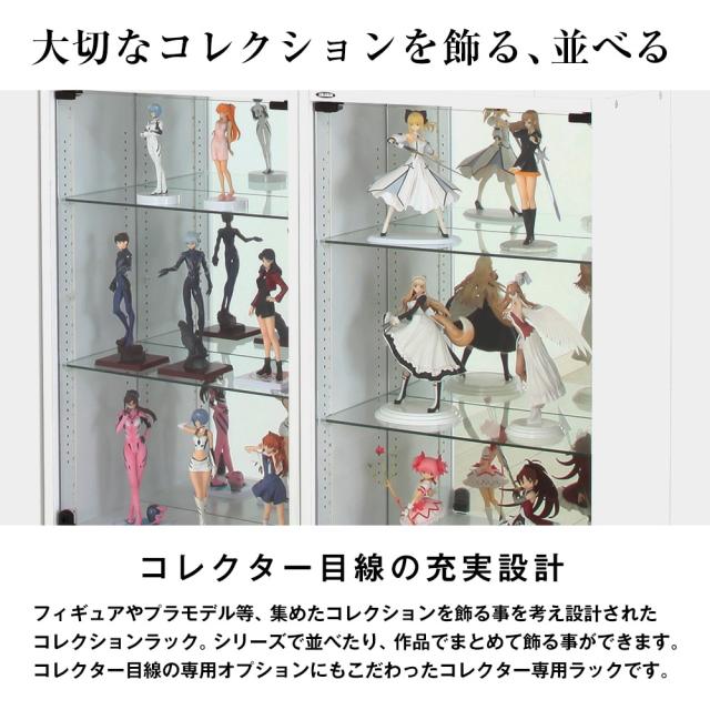 フィギュアやプラモデルなど集めて並べるコレクションラックレギュラーハイタイプ 幅55cm×奥行29cm×高さ180cm。インテリアに合わせて省スペースからはじめられる幅55cmのコレクション専用ラック。フィギュア等のコレクションをより美しく魅せるオプションも充実したフィギュアケースです。
