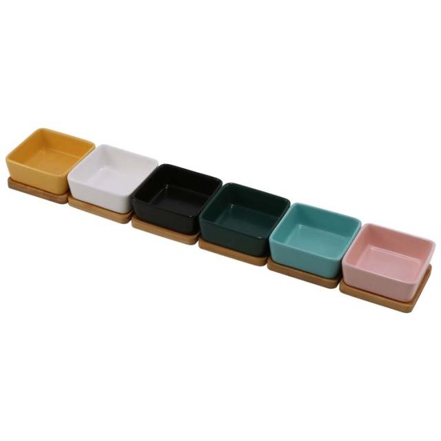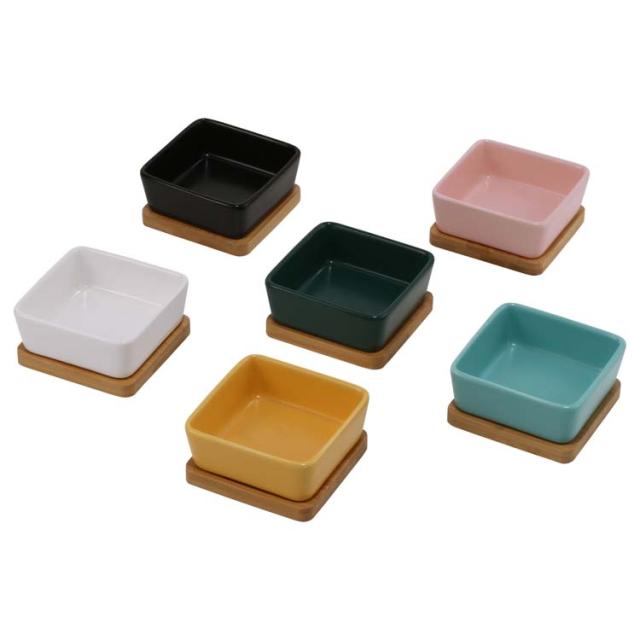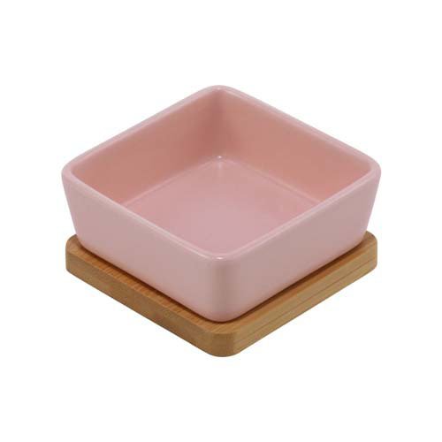 ・本製品はペット用食器です。本来の用途以外には使用しないでください。陶器は若干の吸水性がある為、フードの匂い・色が移る事があります。器の裏の釉薬のかかっていない部分は、多少のざらつきがあります。器を置いた面の傷つき防止の為、付属の竹製トレイを敷いてご使用ください。本体への強い衝撃は、破損や劣化の原因となりますのでお取り扱いには十分ご注意ください。