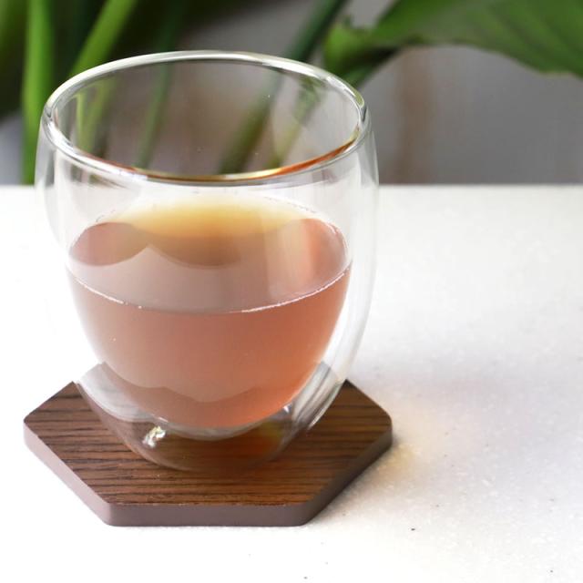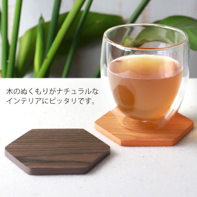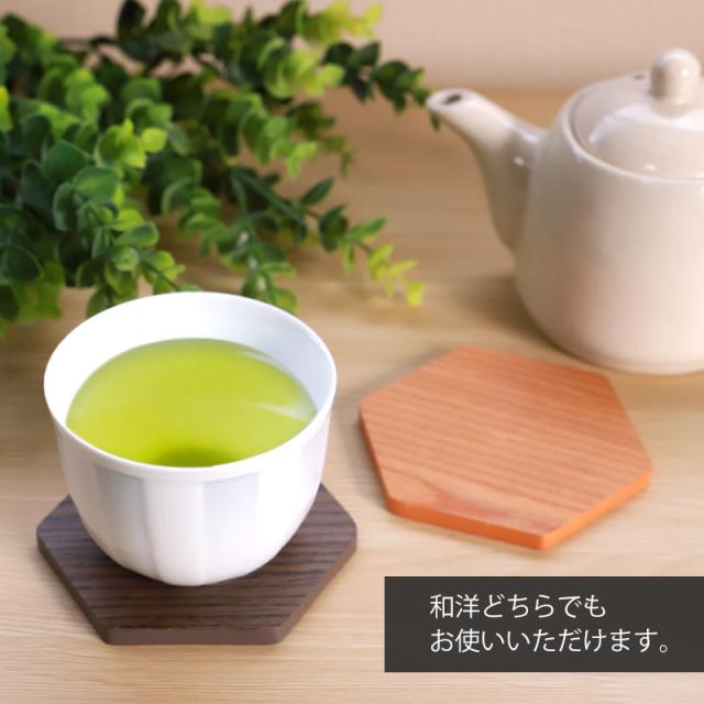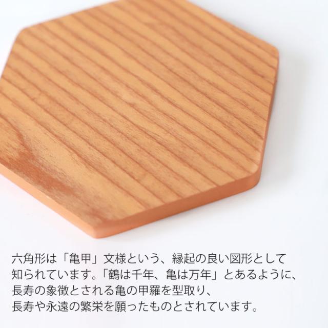 お茶の時間を楽しくする、縁起の良いお洒落な六角形の木製コースター。