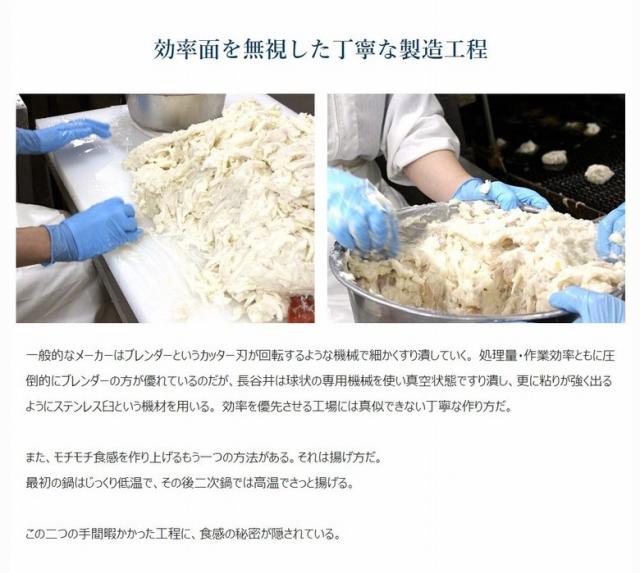 【原材料】魚肉(輸入)、玉ねぎ、ねぎ、小麦でん粉、えび、食塩、砂糖、生姜、卵白、発酵調味料、大葉、煮干しエキス調味料、黒ごま、コショー、動物たん白加水分解物、風味調味料、揚げ油/D-ソルビトール、トレハロース、調味料(アミノ酸等)、酢酸ナトリウム、グリシン、甘味料(ステビア、甘草)、(一部にえび・小麦・卵・牛肉・ごま・大豆・豚肉・ゼラチンを含む)