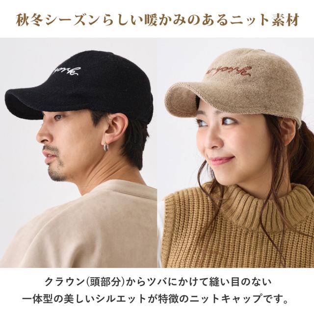 秋冬シーズンに似合う、暖かみのあるニット素材のキャップ