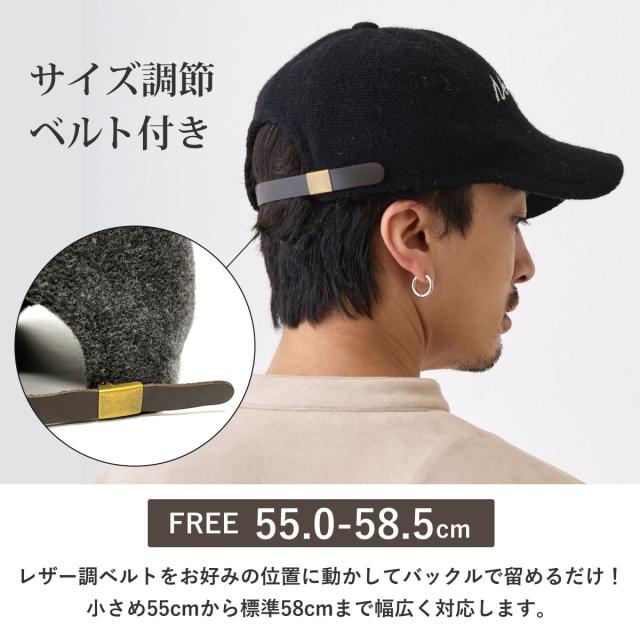 後頭部のレザー調ベルトをお好みの位置に動かしてバックルで留めるだけで簡単にサイズ調節が可能