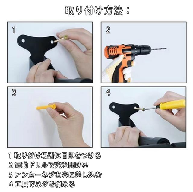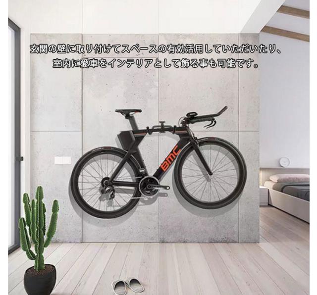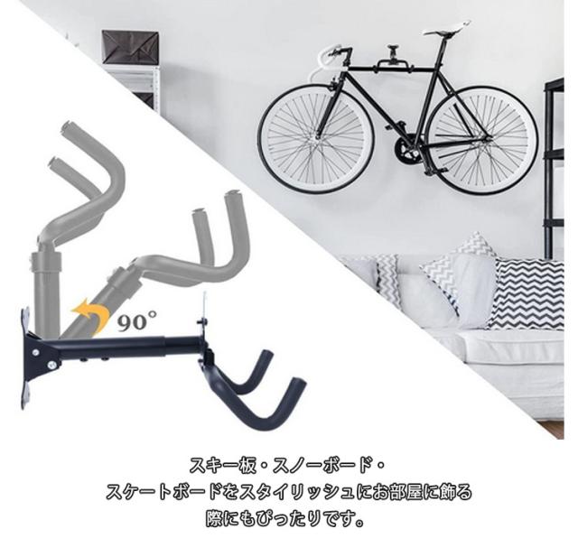 | 自転車を壁掛け収納・ディスプレイできる自転車用フックです。 玄関の壁に取り付けてスペースの有効活用していただいたり、室内に愛車をインテリアとして飾る事も可能です。 使用していない時は折りたたむ事が可能ですので場所をとりません。 長さの伸縮が可能なタイプになっておりますのでお手持ちの自転車などのサイズに合わせて調整することができる。 最大60kgの耐荷重ですのでお子様用の自転車やマウンテンバイク・ロードバイクなどに幅広くお使いいただけます。 スキー板・スノーボード・スケートボードをスタイリッシュにお部屋に飾る際にもぴったりです。 | |