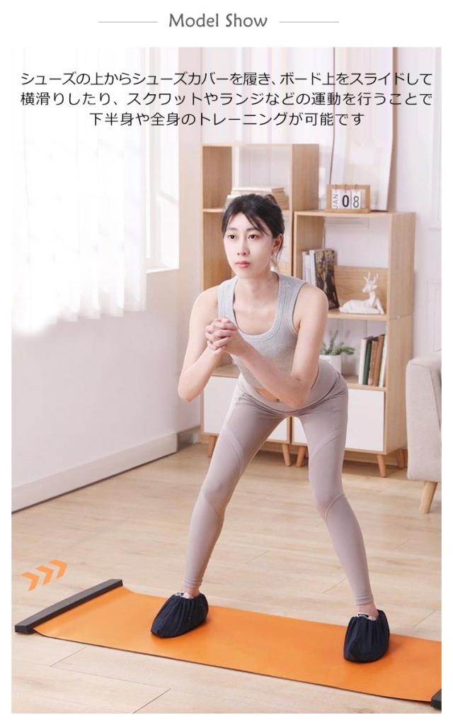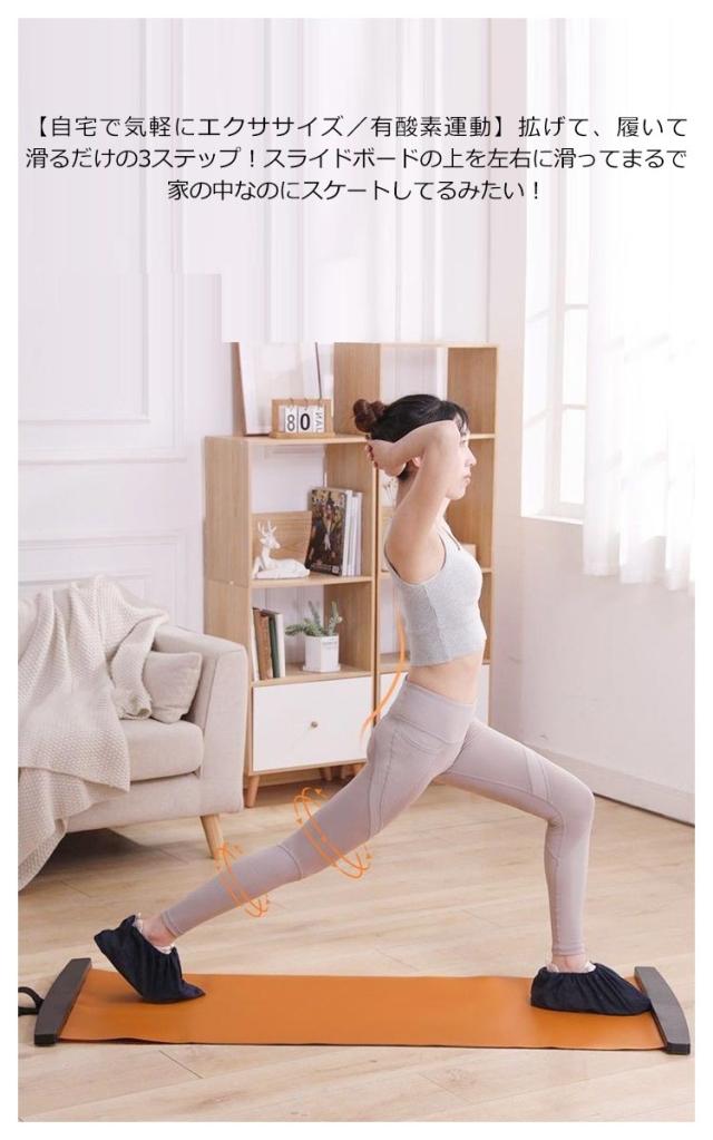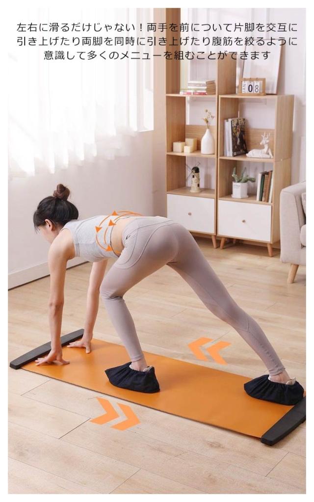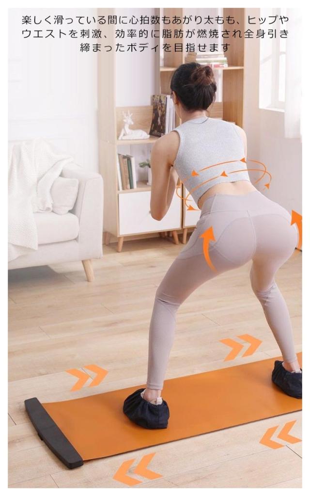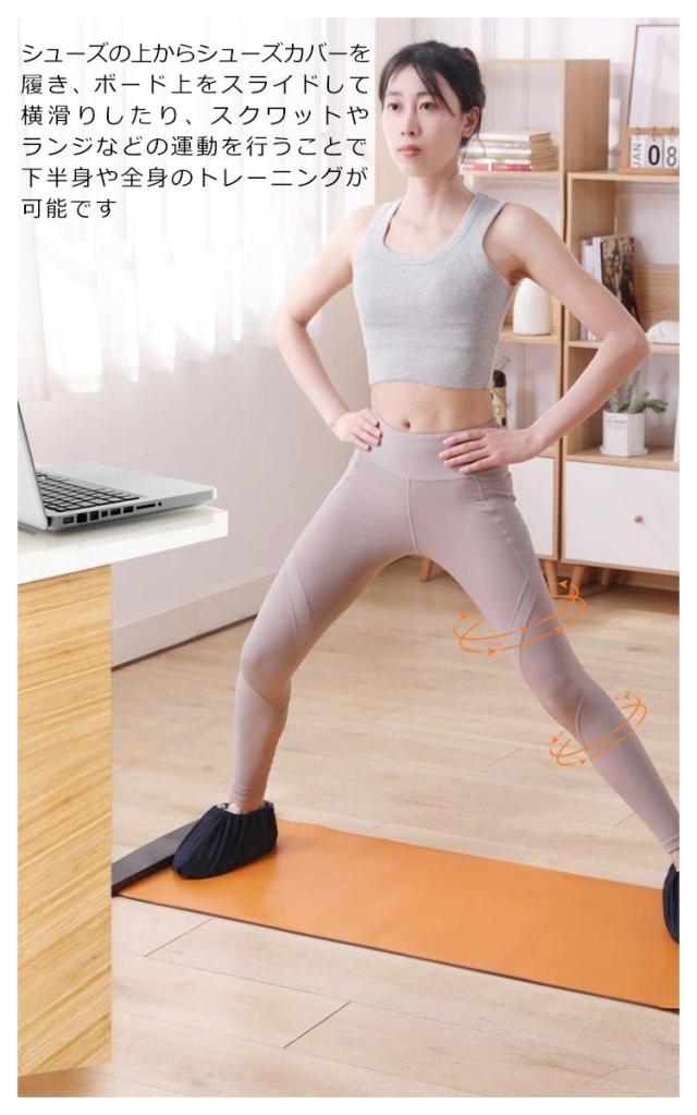 | 体幹トレーニングや下半身の強化におすすめのスライドボード シューズの上からシューズカバーを履き、ボード上をスライドして横滑りしたり、スクワットやランジなどの運動を行うことで、下半身や全身のトレーニングが可能です。 体幹トレーニングや下半身の強化におすすめのスライドボードです。 シューズの上からシューズカバーを履き、ボード上をスライドして横滑りしたり、スクワットやランジなどの運動を行うことで、下半身や全身のトレーニングが可能です。 【自宅で気軽にエクササイズ/有酸素運動】拡げて、履いて、滑るだけの3ステップ!スライドボードの上を左右に滑ってまるで家の中なのにスケートしてるみたい!楽しく滑っている間に心拍数もあがり太もも、ヒップやウエストを刺激、効率的に脂肪が燃焼され全身引き締まったボディを目指せます。 左右に滑るだけじゃない!両手を前について片脚を交互に引き上げたり両脚を同時に引き上げたり腹筋を絞るように意識して多くのメニューを組むことができます。 | |