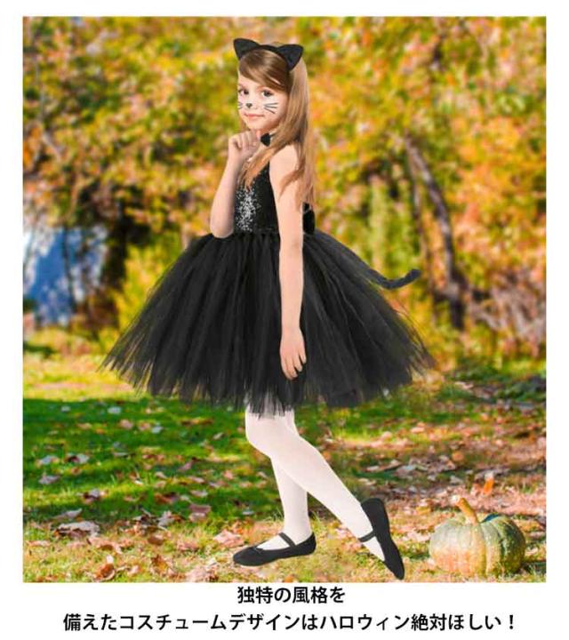 ハロウィン 衣装 子供 女の子 コスプレ 黒猫 子どもコスチューム キッズ ワンピース 猫耳 チュールワンピース コスプレ衣装 可愛い 変装 仮装 耳付き ハロウィンパーティー イベント キリン 虎 豹 舞台劇 舞台衣装 学園祭